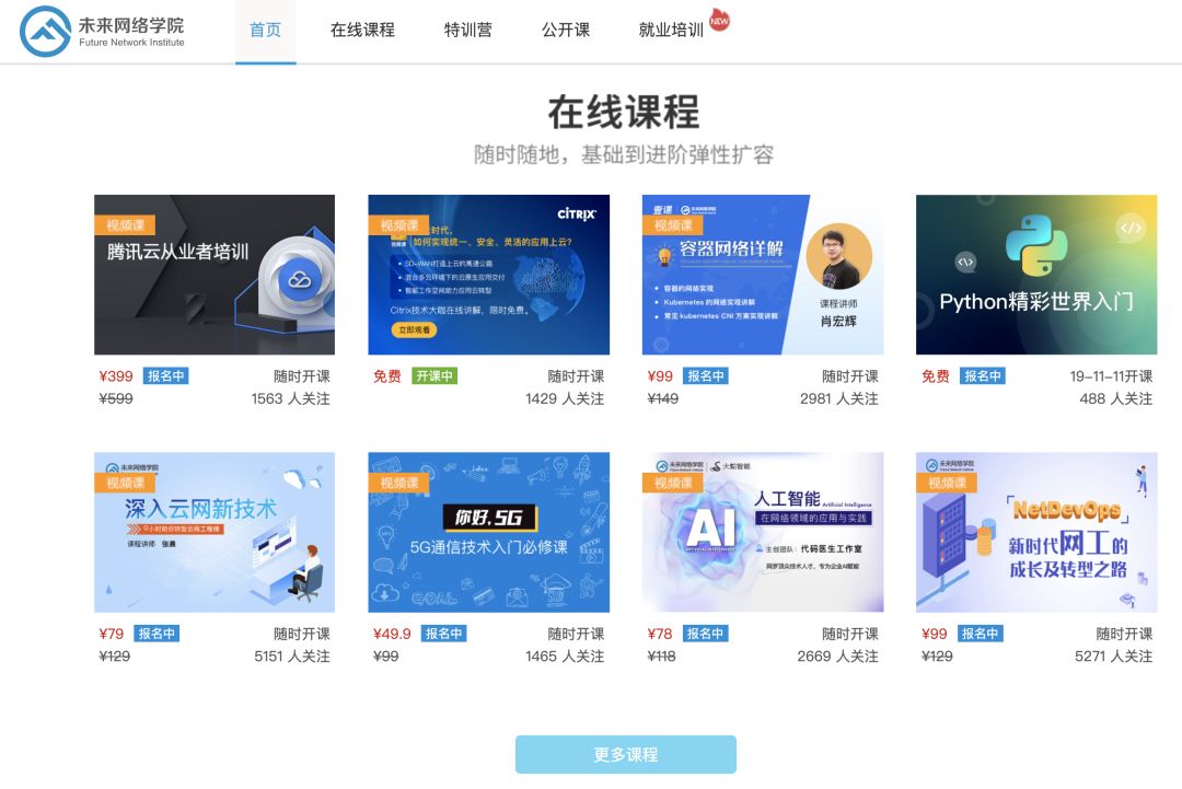 停课不停学,科技助抗疫。优速网络旗下隶属于致网教育品牌的未来网络学院,作为一家专注网络创新技术领域的技术学习服务提供商,也决定以自己擅长的方式参与进来。2月26日,经过一夜的商讨,未来网络学院核心团队决定全员加班,火速上线一批免费课程。最终,在2月28日特别筛选出云计算与SDN在线课程供所有人免费学习,其中包括《腾讯云从业者认证培训课程》、《SDN前世今生》、《Mininet入门与实战》、《深度解析OpenFlow》、《RYU应用开发入门》一共五门近30个小时的信息技术课程。截止3月15日,已有一千多人参与,五百多人完成了部分课程的学习。